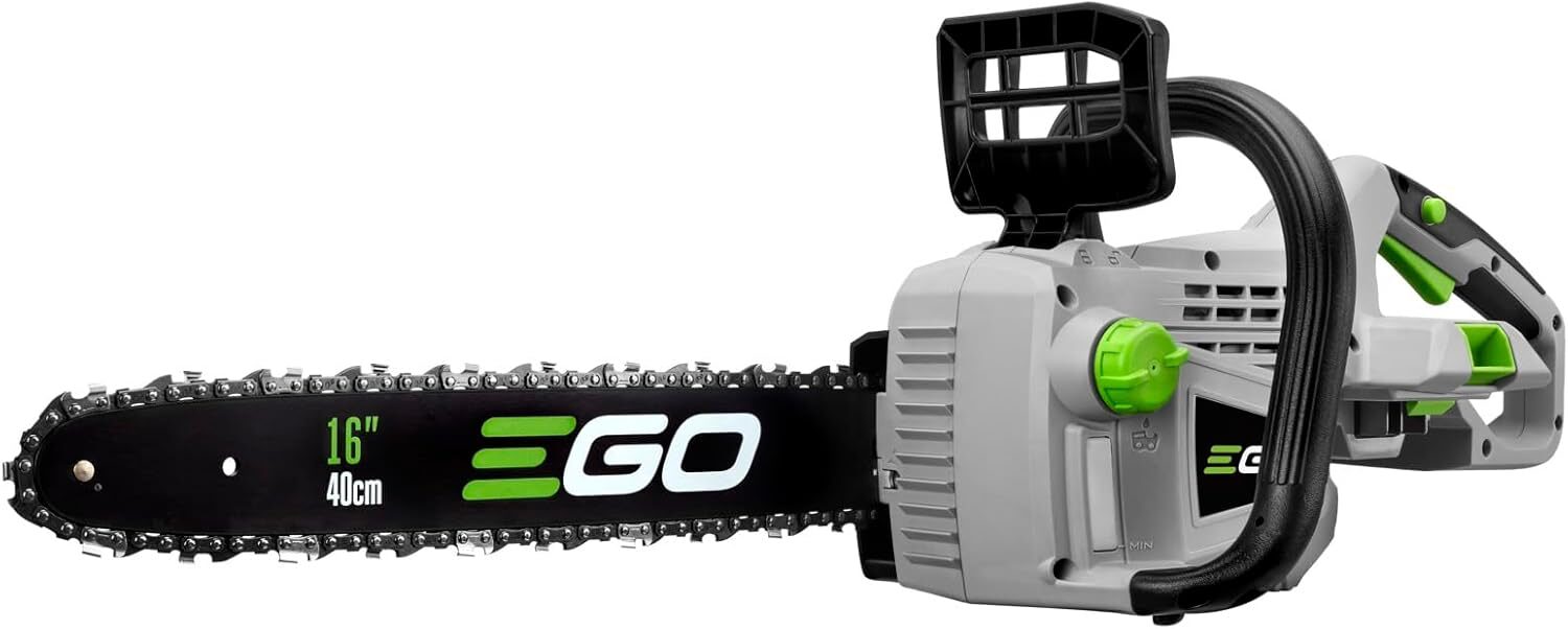 For the larger branches and trim, I purchased an Ego chain saw. Here is what that looks like.
