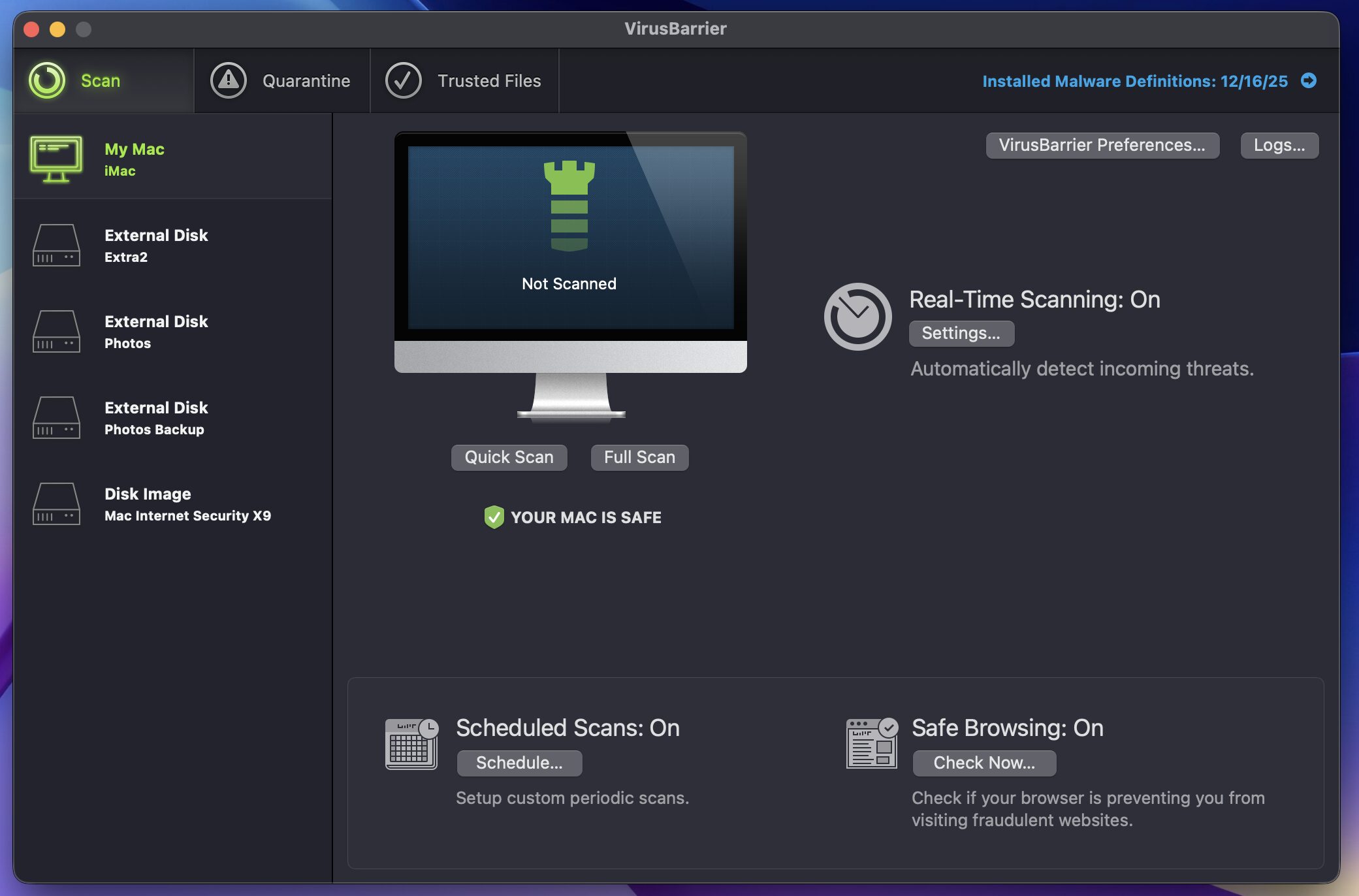 All you have to do is tweak a couple of settings, and Virusbarrier is working. Virusbarrier scans for 99% of all known viruses and malware.
