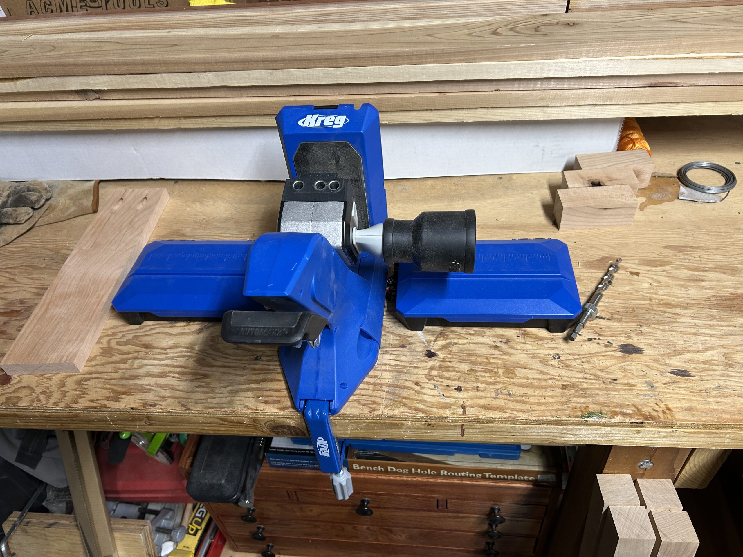 The Entry Table I am working on requires a Kreg Jig for assembly. This is what a Kreg Jig looks like.