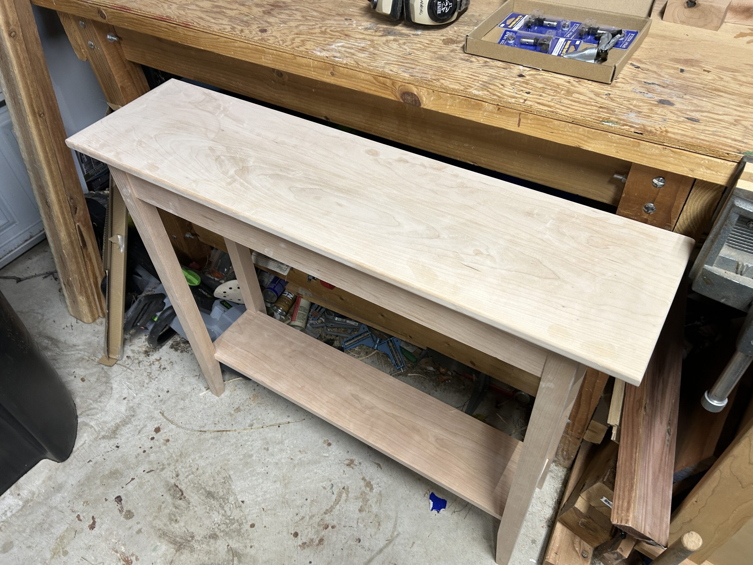I have to do much more sanding on the base, then attach the top. After that is the finish.
